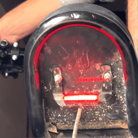 - Taillights: We've sourced lights, brackets, and wiring to include rear lights on the Wheelie Fun Bike. The taillight is also a fully functional brake light, so it will light up even brighter when you press the front brake. We've included a picture of the light setup below.